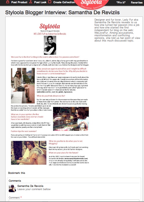 Thank you Styloola for this beautiful interview You can read all interview clicking here Follow me on Styloola Miao Miao Lady Fur